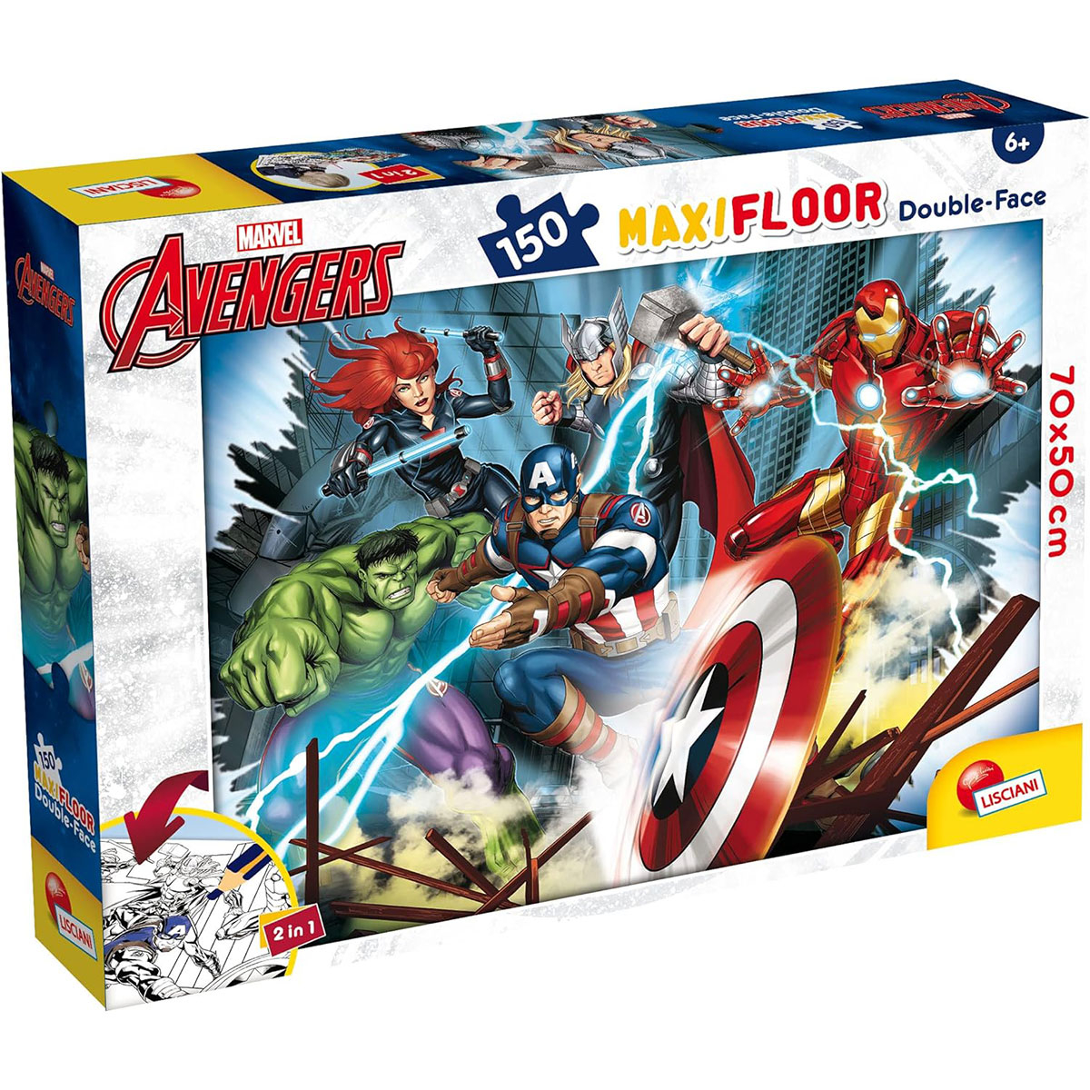 Slagalica Lisciani 150pcs Maxi Marvel Avengers 2u1 složi I oboji 100392